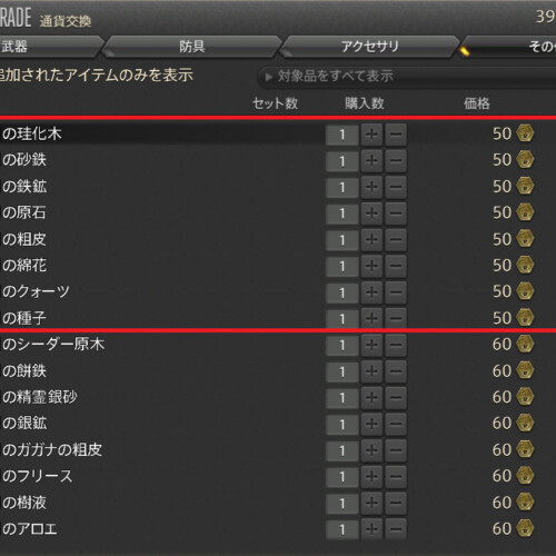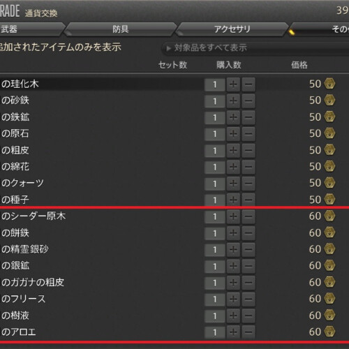 改良用素材「改良用の○○」は黄貨交換の他にマーケットでも購入して入手することも可能です。