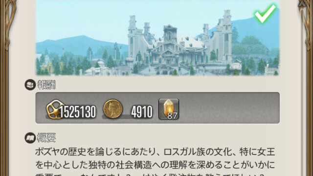 | 経験値 | 全体の中でも経験値は中間ぐらいで少なくはないです。 |
